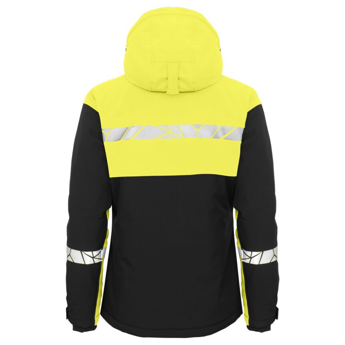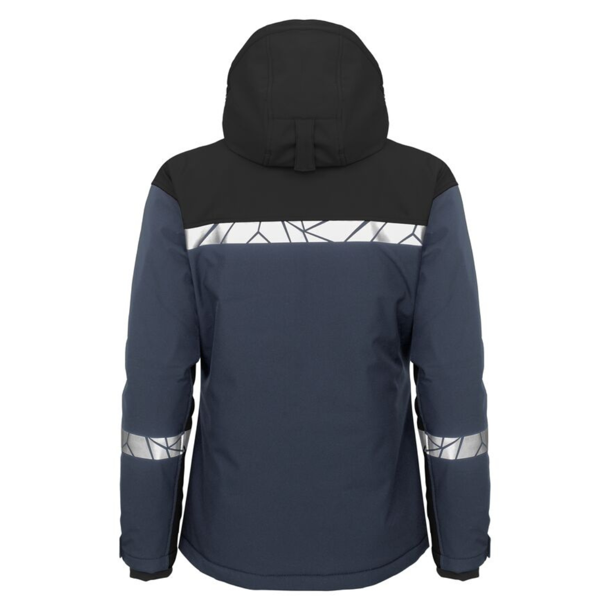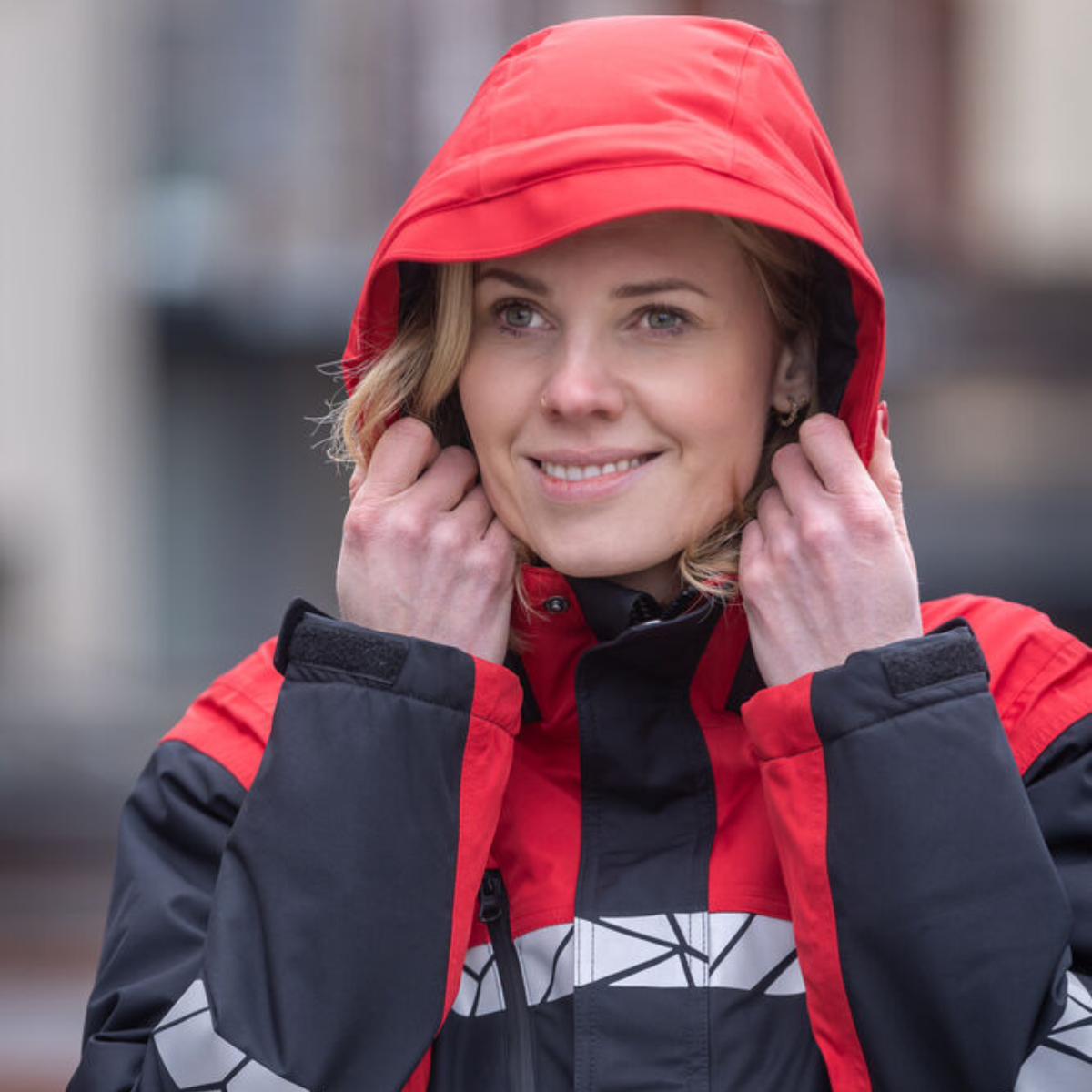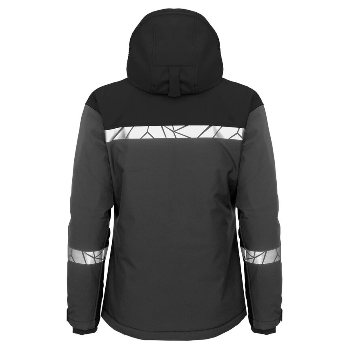 ProJob Softshelljakke Dame er en funksjonell og slitesterk arbeidsjakke i vind- og vannavvisende softshell-materiale, spesielt tilpasset kvinnelig passform. Jakken har glidelås i front med stormklaff som beskytter mot både vind og fukt, og en avtagbar hette som justeres med snøring for optimal tilpasning. Brystlomme på høyre side med innvendig ID-kortfeste gjør den ideell for arbeidsplasser som krever synlig legitimasjon. Sidelommer på begge sider har glidelås for sikker lagring, og åpne innerlommer gir ekstra oppbevaringsmuligheter. Jakken har forlenget rygg for bedre beskyttelse ved bevegelse, samt justerbare mansjetter med borrelås og justerbar midje med snøring for personlig passform. En innvendig lomme for vaskebrikker gjør jakken fullt kompatibel med profesjonelle vaskerutiner. Den er godkjent for industrivask etter ISO 15797, sertifisert etter Øko-Tex 100, og oppfyller kravene for økt synlighet EN 17353. Kan leveres med trykk eller brodering av bedriftens logo.