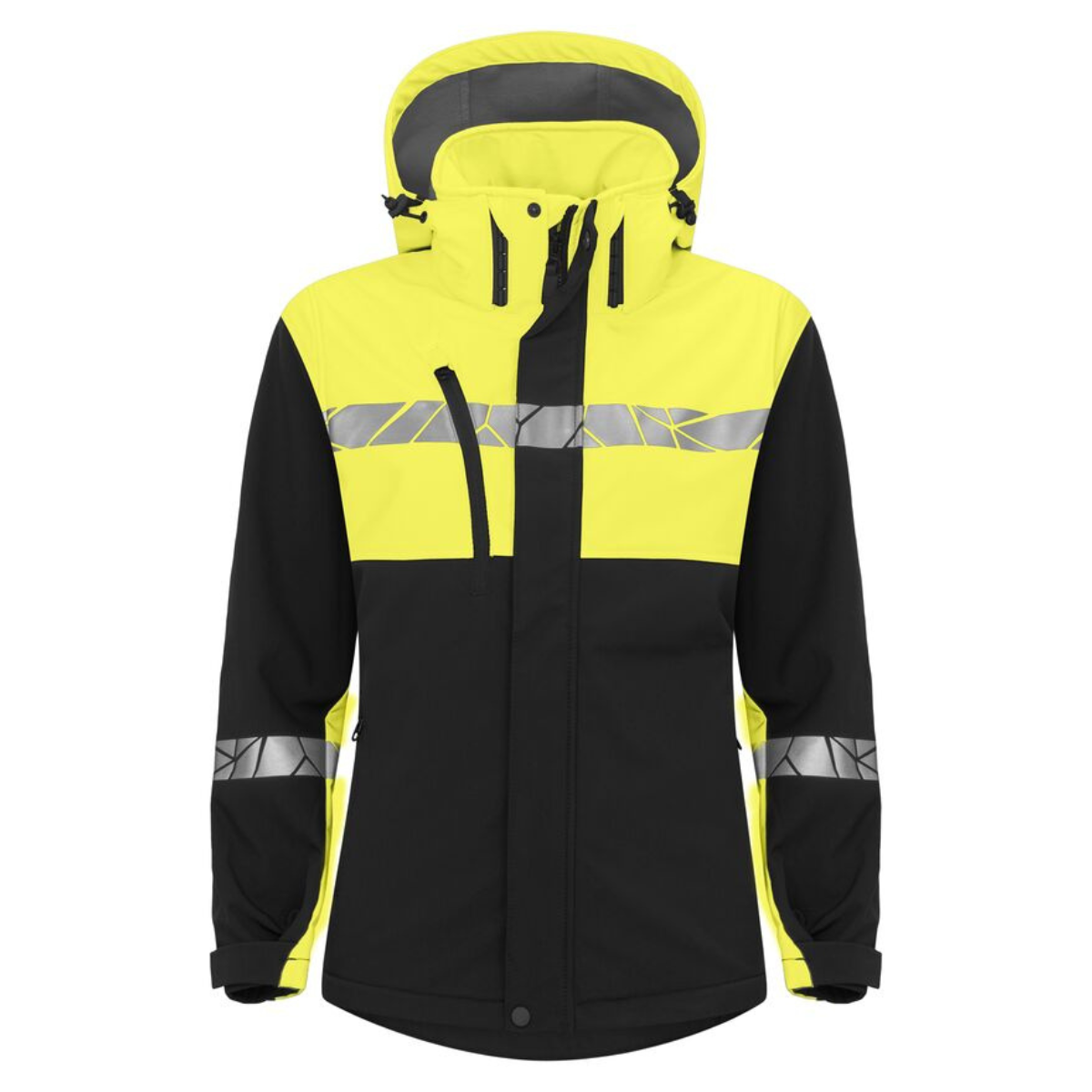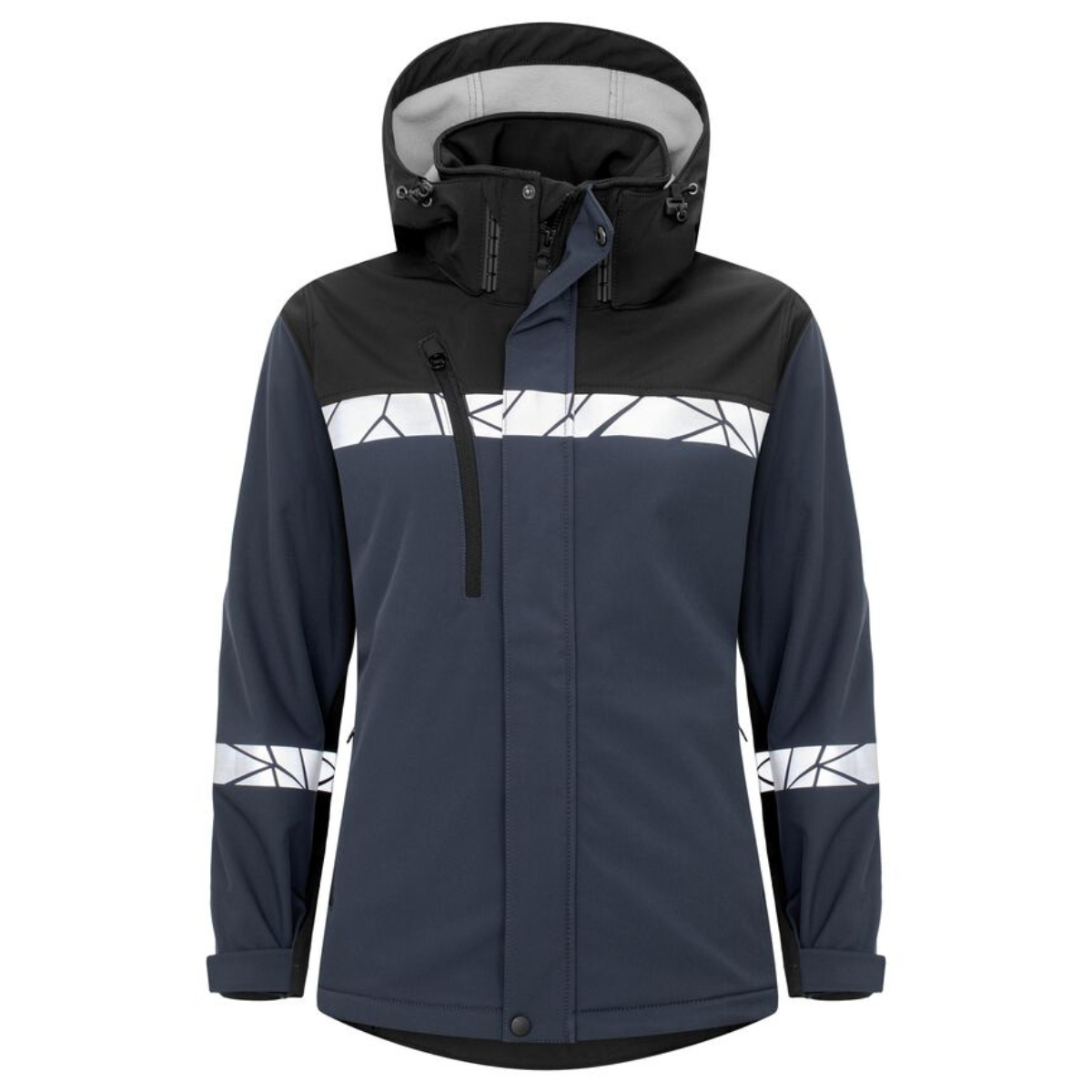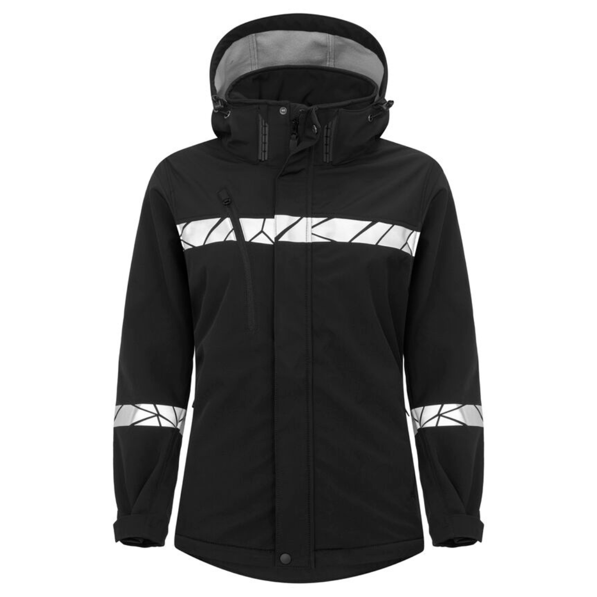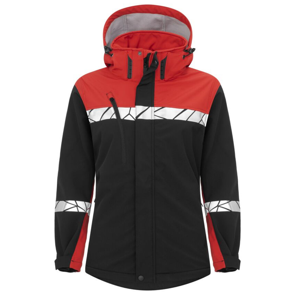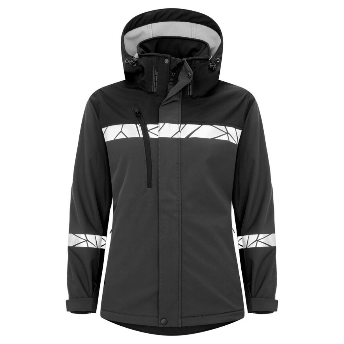 ProJob Softshelljakke Dame – vind- og vannavvisende damejakke med ID-kortlomme, avtagbar hette og glidelåslommer. Kan leveres med logo. Sertifiseringer: ISO 15797, EN 17353, Øko-Tex 100.