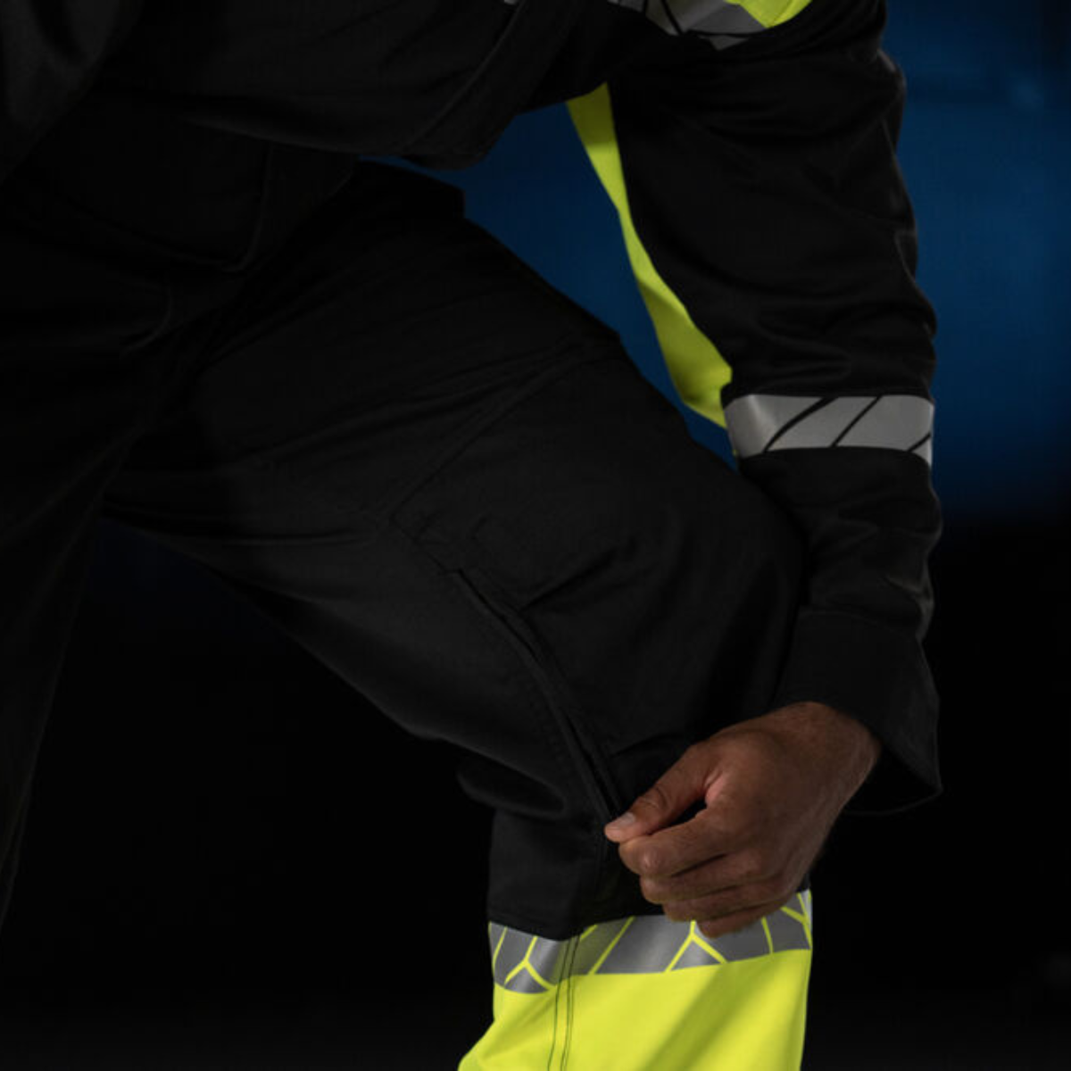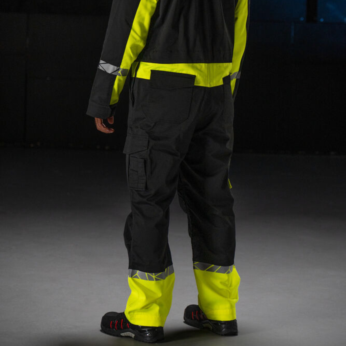 ProJob Kjeledress er utviklet for profesjonelle fagarbeidere som trenger et slitesterkt, funksjonsrikt og komfortabelt plagg som tåler tøffe arbeidsforhold. Kjeledressen har en toveis glidelås i front som går helt opp til kragen og er beskyttet av en vind- og smussavvisende klaff med trykknapper. Den har en brystlomme på høyre side med innvendig ID-kortfeste, dype sidelommer og gjennomgående åpninger som gir tilgang til bukselommene under. Benlommene er designet for optimal funksjonalitet: en romslig venstrelomme med klaff og borrelås, innvendig telefonlomme, og høyrelommer for penner, papir og tommestokk. Kneputelommer med glidelås på utsiden gjør det enkelt å sette inn og ta ut kneputer ved behov. Forbøyde knær og justerbart innsydd stretchbånd i midjen gir utmerket bevegelsesfrihet og komfort. Kjeledressen har også baklommer, hvor venstre baklomme er utstyrt med klaff og magnetisk lukking. Mansjettene justeres med borrelås for optimal passform. Plagget er testet for industrivask etter ISO 15797 og har økt synlighet etter EN 17353. Kan leveres med trykk eller brodering av bedriftens logo.