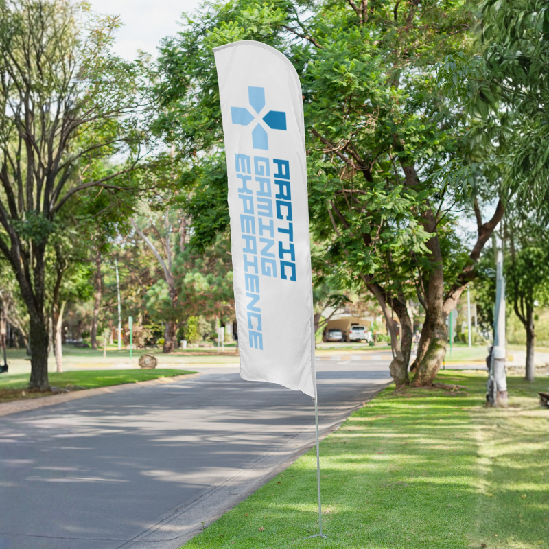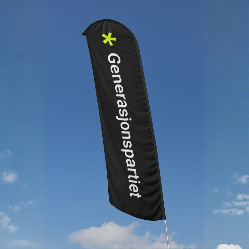 Prisgunstig beachflagg med rett topp og tydelig profil. Flaggduk i B1-sertifisert polyester og fleksibel mast i aluminium og glassfiber. Vær obs på at vi alltid selger flagg og flaggstang separat, for komplett beachflagg må flaggstang derfor legges til i bestillingen. Vi har valgt å gjøre det på denne måten slik du så enkelt og rimelig som mulg skal kunne bytte budskap på flagget eller erstatte en ødelagt stang uten å være nødt til å bestille begge deler. Det er bra for både budsjettet og miljøet.
