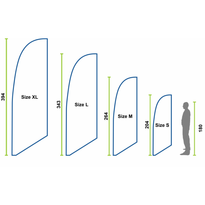 Beachflagg S Premium leveres med ditt design og er ideell for butikker, salgskampanjer, events, idrettsarrangementer og messer – der synlighet og fleksibilitet er nøkkelord.