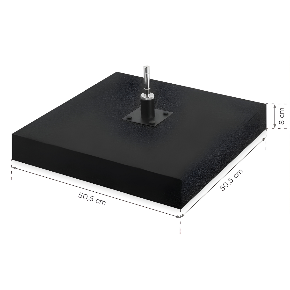Beachflagg gummibase 19 kg er en svært stabil og slitesterk base laget av massivt gummimateriale. Den tunge konstruksjonen gir utmerket støtte for både små og store beachflagg, og gjør basen spesielt godt egnet for utendørs bruk på harde flater som asfalt, betong, fliser og inngangspartier.